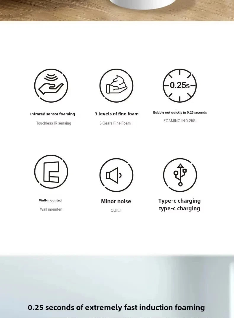 Intelligent Sensor Multi-Speed Contact-Free Wall-Mounted Vertical Hand Sanitizer Bubble Machine Rechargeable Soap Dispenser